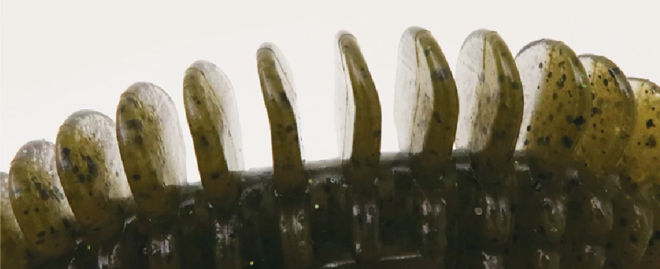 Der BottomUp Gimmy ist ein CreatureBait und überzeugt durch seinen verführerischen Lauf. Er ist geflavoured und spielt in der Absinkphase verführerisch mit seinem Tail und erzeugt extrem viele Verwirbelungen durch die hohe Anzahl an Lamellen. Geeignet ist der Bait für eine Vielzahl an Rigs.