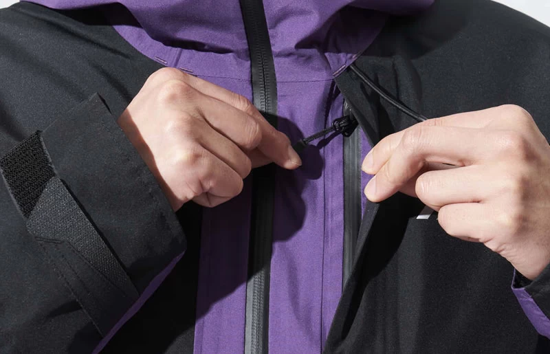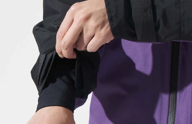 An den Innenärmeln sind Bündchen angebracht, um das Eindringen von Wasser durch die Bündchen zu reduzieren und so die Feuchtigkeit im Inneren des Kleidungsstücks zu minimieren.
