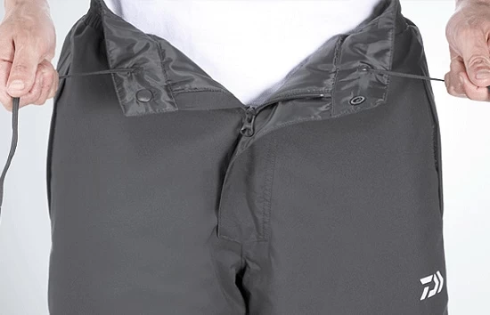 Durch Ziehen an der Saumspindel kann die Straffheit des Saums angepasst werden, wodurch das Eindringen von kalter Luft und Wasser von außen reduziert wird. Darüber hinaus sind die Taschen mit wasserdichten Reißverschlüssen ausgestattet, die das Eindringen von Wasser verhindern und so die Feuchtigkeit in der Kleidung minimieren. Weiterhin ist der Anzug ausgestattet mit Verstellern auf beiden Seiten der Taille der Hose, mit denen du die Passform der Taille schnell anpassen kannst. Hosenträger gehören zur Standardausrüstung.