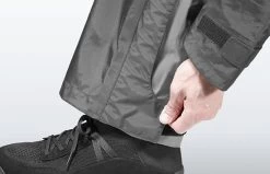 Durch das Ziehen des Kordelzugs an der Rückseite der Kapuze wird die seitliche Sichtbarkeit deutlich erhöht, sodass auch bei schlechtem Wetter Sichtbarkeit gewährleistet ist. An den Innenärmeln sind Bündchen angebracht, um das Eindringen von Wasser durch die Bündchen zu reduzieren und so die Feuchtigkeit im Inneren des Kleidungsstücks zu minimieren.