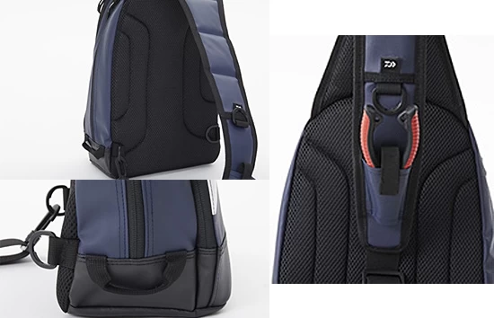 Das „Daiwa One Shoulder Bag“ kommt mit breitem Schultergurt, der wahlweise links oder rechts befestigt werden kann. Dieser lässt sich leicht ziehen, sodass die Tasch nach vorne gebracht wird. Im Hauptfach können 2 bis 3 mittelgroße Boxen (ca. 26 x 19 cm) untergebracht werden. Das Bag wird mit Zangenhalter, D-Ring und Gürtelschlaufe geliefert und Netzpolster auf der Rückseite.