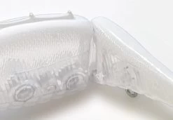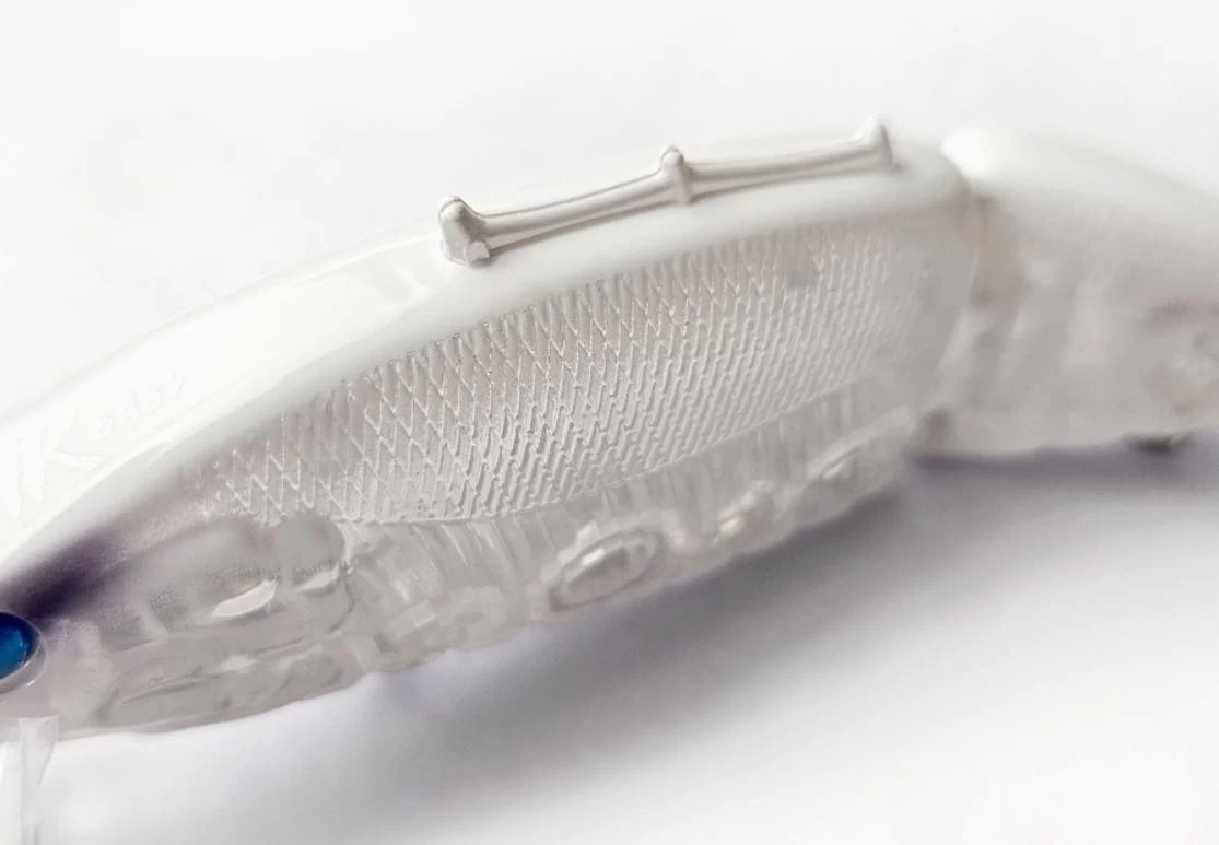 Markenzeichen der MIR Baby Swimbaits ist die markante Rückenflosse, welche aus Kunststoff ist und drei nach vorn gerichtete Stacheln aufweist.