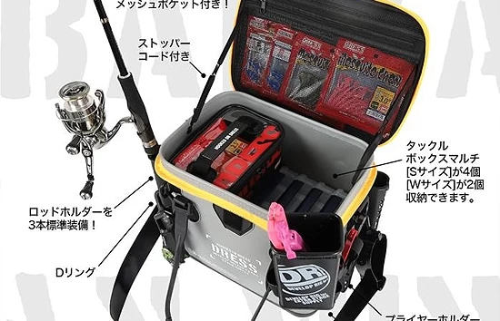 Bietet Platz für 4 Tackle Boxen Multi S-Größe und 2 Tackle Boxen Multi W-Größe, die sich praktisch zum Aufbewahren von Würmern und kleinen Gegenständen eignen. Das Material ist resistent gegen Gerüche, Schmutz und Kratzer und verfügt über eine hervorragende Abriebfestigkeit.
