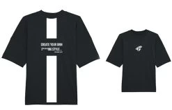 Auf dem Rücken befindet sich der Spruch „Create Your Own F***ing Style“, welcher durch Transferdruck auf das T-Shirt aufgebracht wurde.