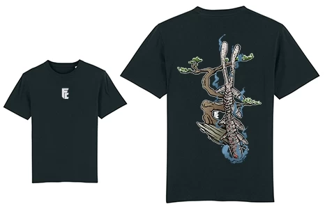 Auf dem Rücken befindet sich der ScissorComb in Baby Zarigani zwischen einem Bonsai, welcher durch Transferdruck auf das T-Shirt aufgebracht wurde.