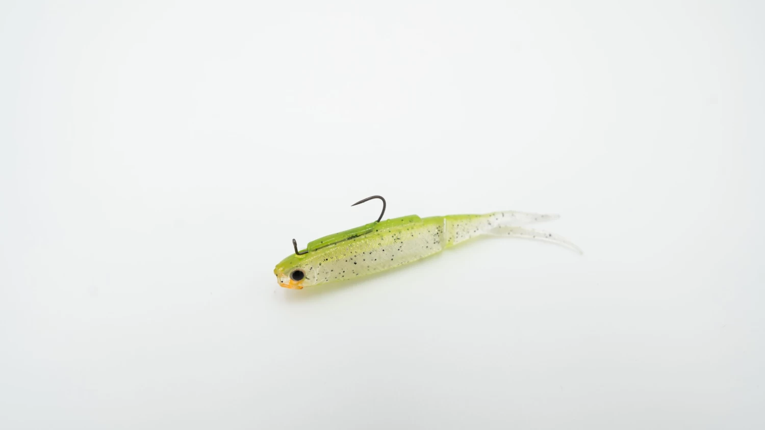 Der Köder besitzt hierbei ein Gelenk, wodurch er besonders realistisch durch das Wasser läuft und einen doppelten Pintail.