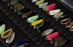 Das „Jackall Timon Spoon Wallet“, das nicht nur für die systematische Aufbewahrung von Spoons, sondern auch für Haken konzipiert ist, wurde in Bezug auf Design und Spezifikationen aktualisiert. Jackall hat eine praktische Installation hinzugefügt, um Spoons ordentlich zu lagern. Der integrierte Trenner verhindert somit, dass sich die Löffel gegenseitig berühren, er ist dicker und hat eine Struktur, die weniger wahrscheinlich den Köder beschädigt. Eine Mesh-Struktur wird verwendet, um den Haken in optimalem Zustand zu lagern, ohne die Schärfe des Hakens zu beeinträchtigen. Durch das System, das den Haken im Netzteil innerhalb der Wallet einhakt, wird der Hakenpunkt während der Lagerung vor Abnutzung geschützt. Es gibt eine Auswahl von 3 Farben, die je nach Design und Verwendung passend sind.