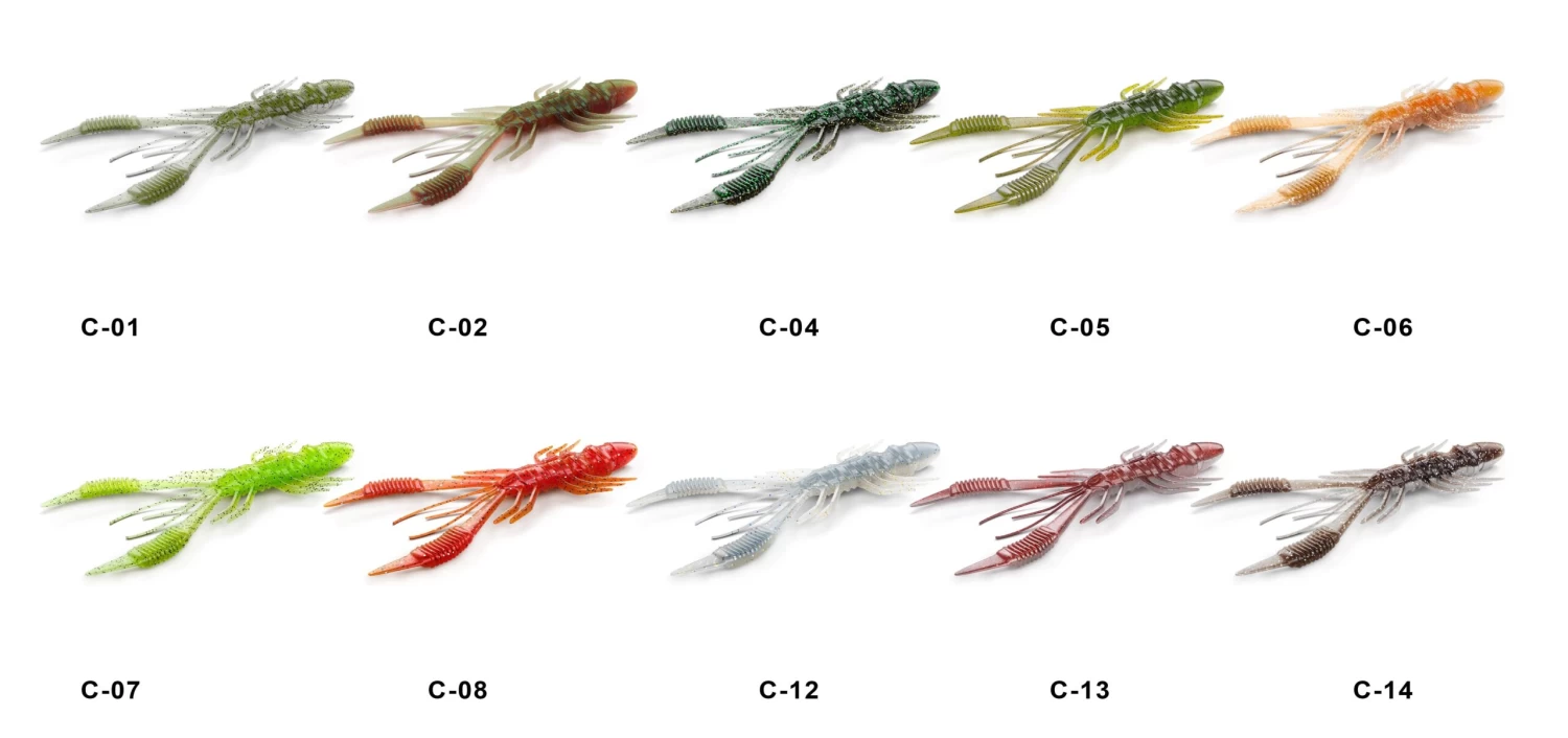 Die CRTR stellt die perfekte Imitation eines Insekts dar. Die Kombination aus zwei großen Scheren mit kleinen Fühlern und Beinen, die feinste Vibrationen erzeugen, machen CRTR zur perfekten Wahl für die Präsentation am Skirted-Jig oder an diversen anderen Finesse-Rigs wie Carolina-, Texas-, oder Drop-Shot-Rig.