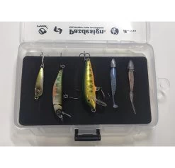 Es eignet sich hervorragend für die Aufbewahrung von Offset-Jigs, Spoons, Chatterbaits und Offset-Hooks. Im Inneren befindet sich ein s.g. Slit-Foam, ein Schaumstoff, welcher mit Schlitzen versehen ist.