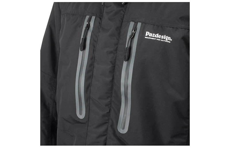 Die „Pazdesign PBR-045 Wading Warm Jacket V“ ist eine kurz geschnittene Jacke zum Waten, mit „Thermolite Active“-Isolierung für die Polsterung. Die Polsterung ist an den richtigen Stellen platziert, um die Bewegungsfreiheit zu erleichtern. An den Ellbogen, Ärmeln und dem Saum, die anfällig für Nässe sind, wurde die Polsterung absichtlich entfernt, um ein schnelleres Trocknen zu ermöglichen und den Stress während und nach dem Angeln zu reduzieren. Sie verfügt außerdem über einen inneren Saum, der das Eindringen von kalter Luft und Spritzwasser blockiert, und ist ein einfaches, aber sorgfältig gestaltetes Produkt.