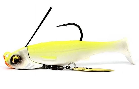Der „Raid Japan Headswimmer Libero“ ist eine ultrakompakte Kombination aus einem Jigkopf mit Weedguard und einem Schadkörper. Die flache Form der Unterseite des Kopfes verlangsamt die Absinkphase in die Wasserschichten. Darüber hinaus erhöht das kleine Willow-Blatt den visuellen Reitz und sorgt für zusätzliche Vibrationen. Der weiche Schwanz des Körpers bewegt sich auch bei der kleinsten Einholbewegung. Er ist daher sehr effektiv beim linearen und ruckartigen Angeln.