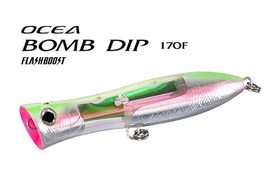 In der heutigen Zeit des Casting-Games wird die Wirksamkeit von Poppern immer weiterentwickelt, um die repräsentativen Zielfische anzusprechen. Der „Ocea Bomb Dip 170F“ ist dahingehend ausgelegt, um in Situationen, in denen beliebte Zielfische angepeilt werden, eine starke Anziehungskraft und eine leicht zu fressende Silhouette zu vereinen. Weiterhin zielt er auch darauf ab, Fehlbisse zu reduzieren, bei denen der Köder auf der Wasseroberfläche rollt, da er hier sonst leicht verwickelt werden kann.