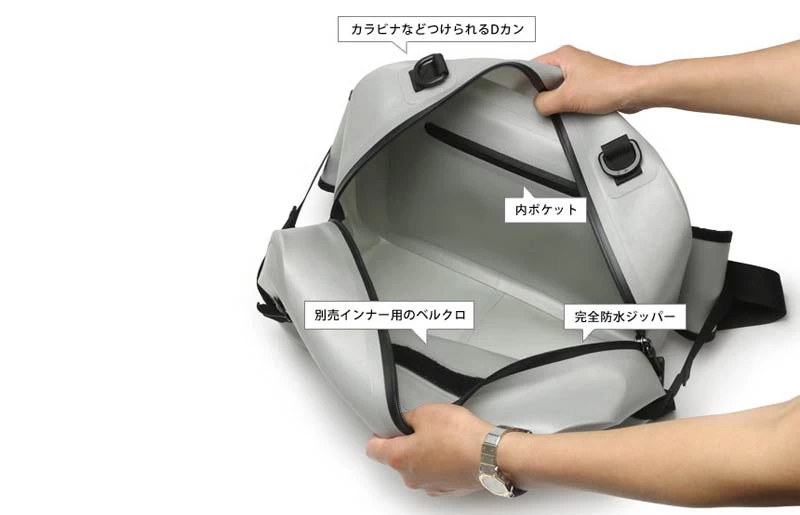 - Der vollständig wasserdichte Reißverschluss erfordert aufgrund seiner Konstruktion Kraft zum Öffnen und Schließen, was jedoch kein Mangel ist.