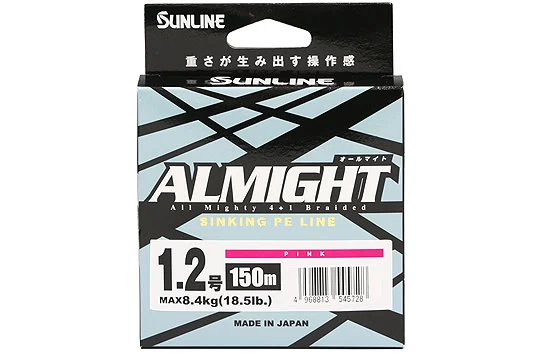 Die „Sunline Almight“ wurde entwickelt, um Anglern zu helfen, starken Wind und schnelle Gezeiten mit überlegener Kontrolle zu überwinden. Sie ist mit einem spezifischen Gewicht von 1,48 gefertigt, dass durch eine Mischung aus vier ULT-PE-Materialien und einem Faserkern mit hohem spezifischem Gewicht erreicht wird. Die innovativen Fasern sind so konstruiert, dass sie einwandfrei sinken, um die Kompatibilität mit Spinn-Finesse-Anwendungen zu verbessern. Sie verhindern das Aufschwimmen und Bieten eine verbesserte Ködermanipulation, indem sie die Geradlinigkeit erhöhen und die Krümmung deiner Hauptschnur minimieren.